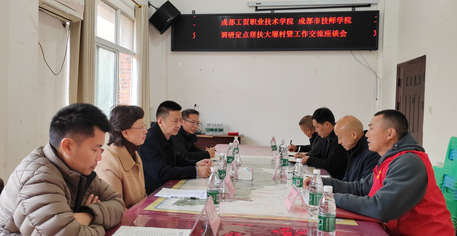 为深入贯彻落实国家乡村振兴战略部署,12月29日,学校党委副书记、校长陈大勇,党委委员、副校长杜洁一行赴简阳市宏缘镇大堰村开展乡村振兴专题调研,宏缘镇党委委员、人大主席易学全,大堰村“两委”班子成员及驻村工作队参与调研。调...